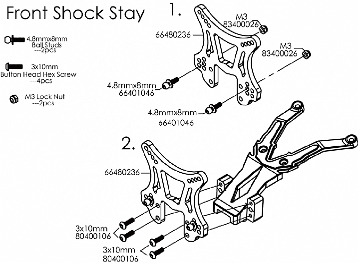 66480266 Carbon fiber front & rear shock absorbe 4mm / Verstärckte Ausführung