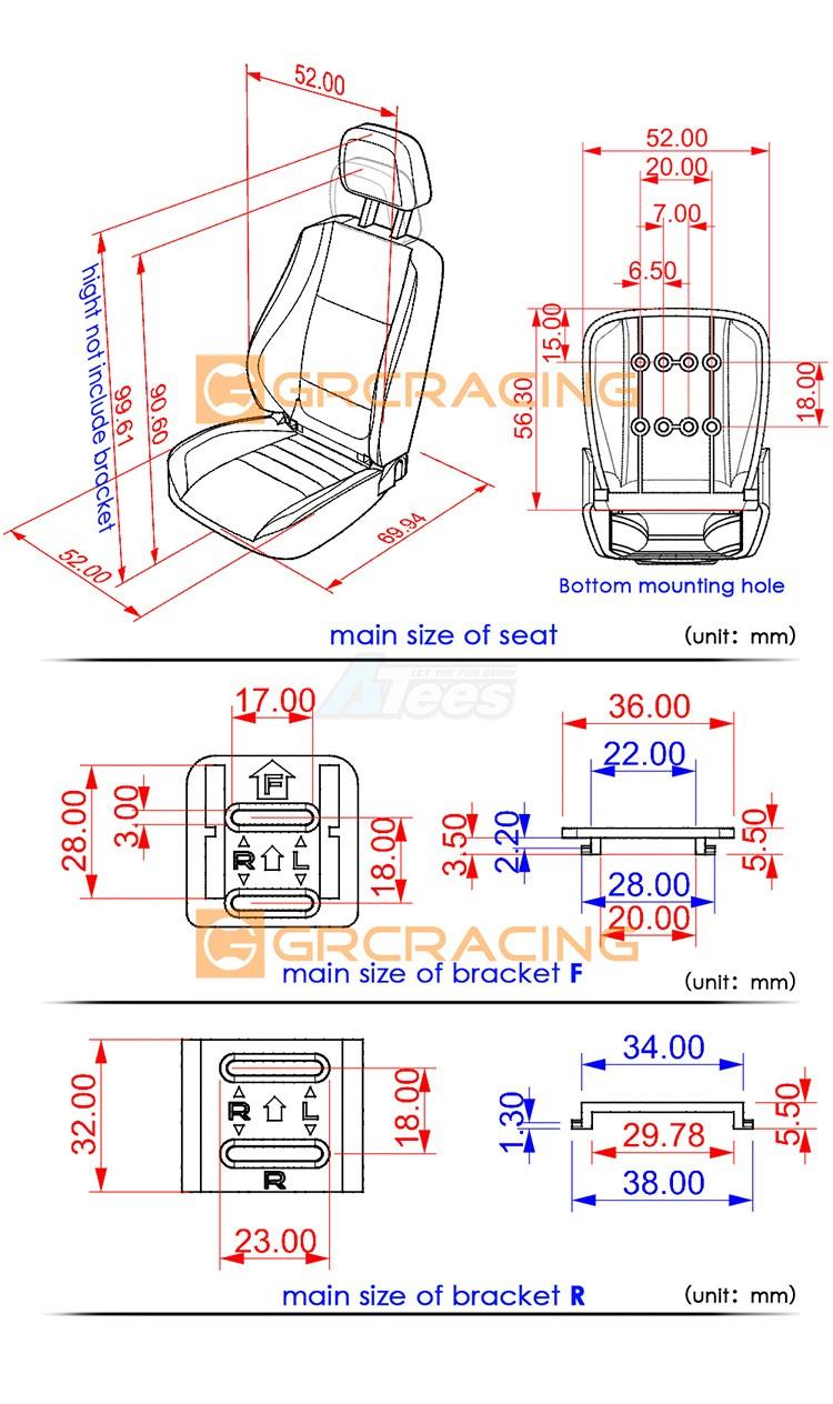 GRC/G161CR GRC Simulation Cab Multi-directional Adjustable Seat for 1/10 RC Crawler Red